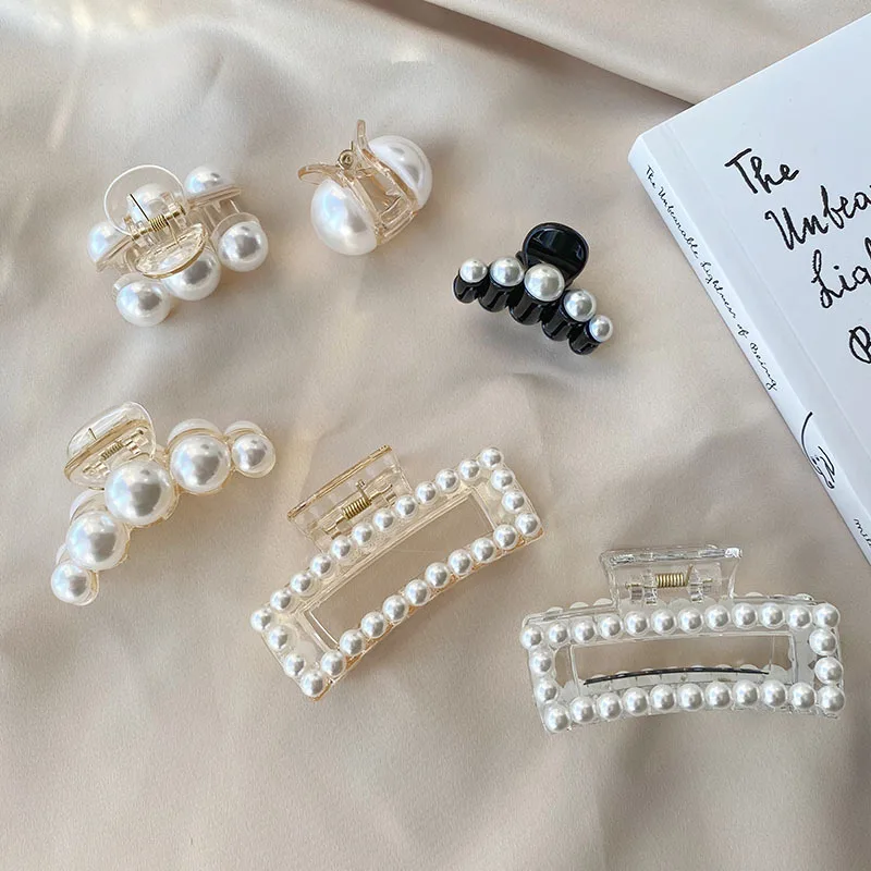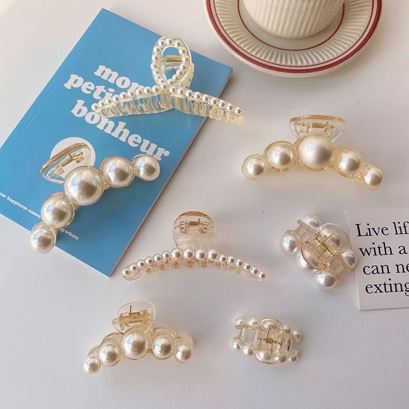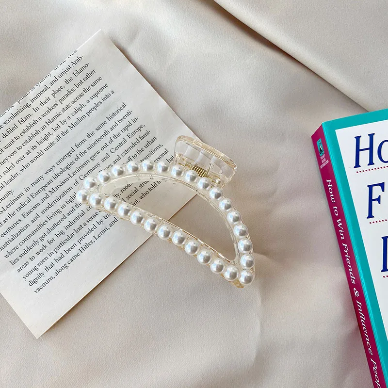 Women Elegant Big Pearls Hair Clip Acrylic Hair Claw Clips Big Size