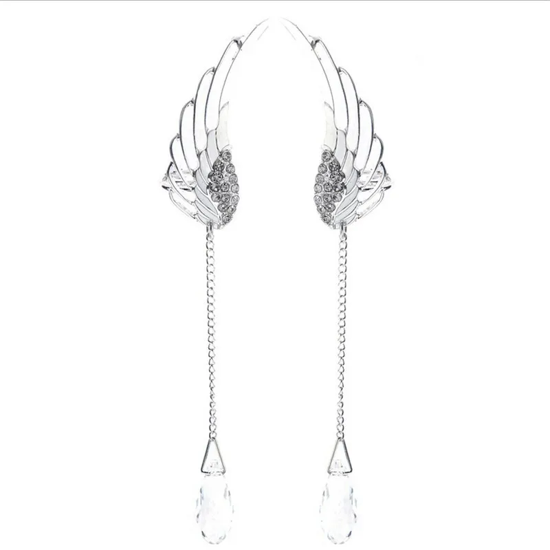 New Silver Plated Angel Wing Stylist Crystal Earrings Drop Dangle Ear Stud For Women
